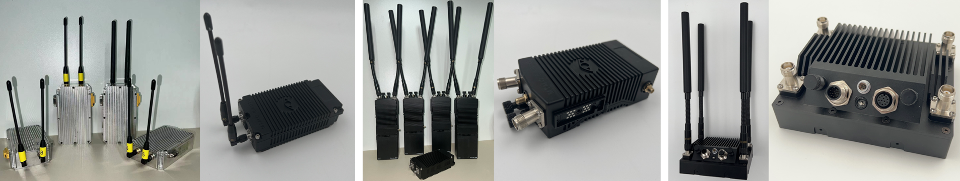 图6 自研多天线宽带自组网通信系列设备(左:机载、中:手持、右:车载)
