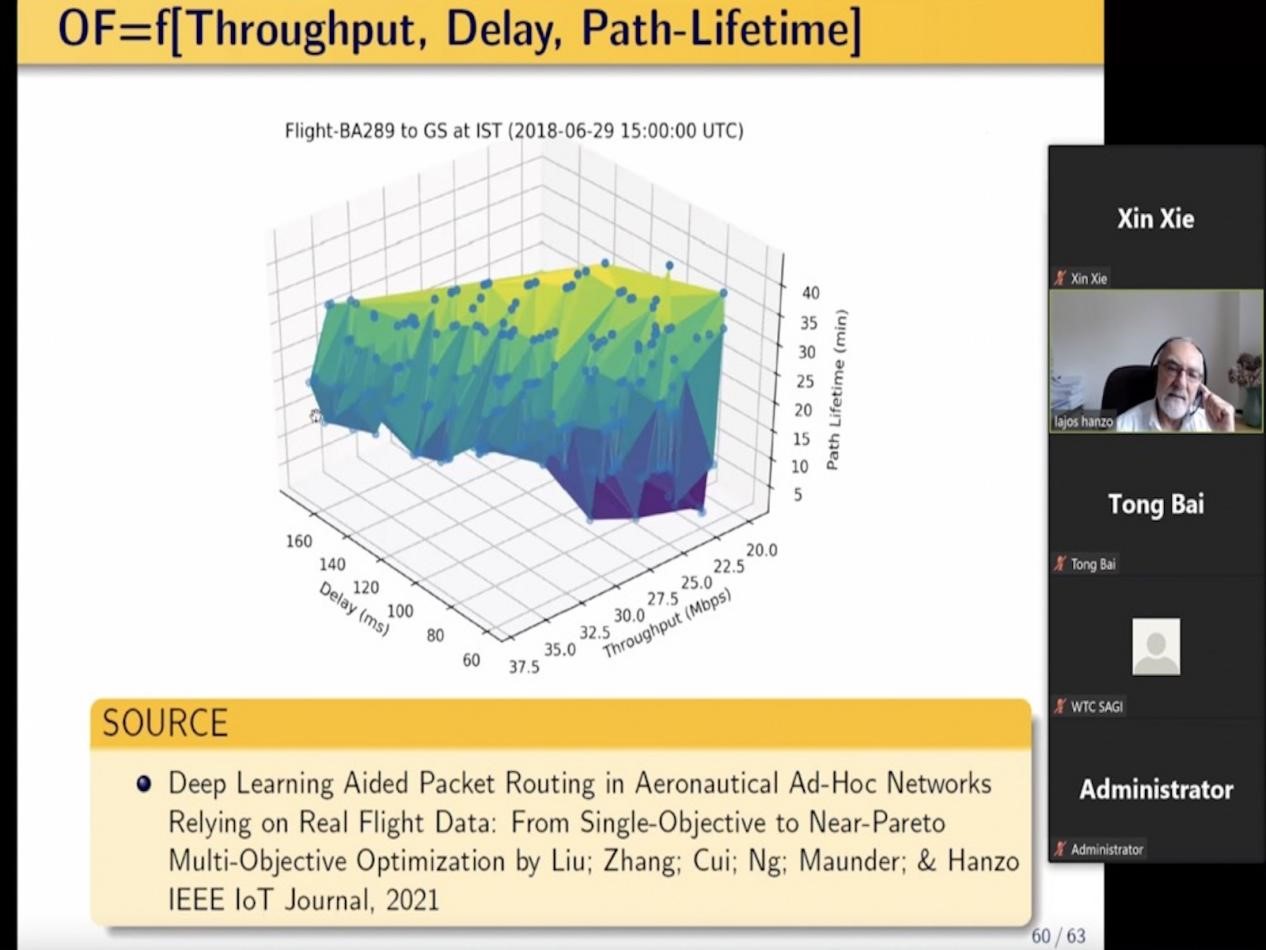 In the report, Prof. Hanzo firstly introduced the importance of multi-objective optimization in the air-space-ground integrated wireless communication network. Then it is mentioned that the Aeronautical Ad-Hoc Networking is an important part of the air-space-ground integrated network. Taking the routing problem in the air-space-ground integrated network as an example, the multi-objective optimization problem, which aims to minimize the latency, maximize the throughput and path lifetime, was introduced and the Pareto-front was analysed in detail.